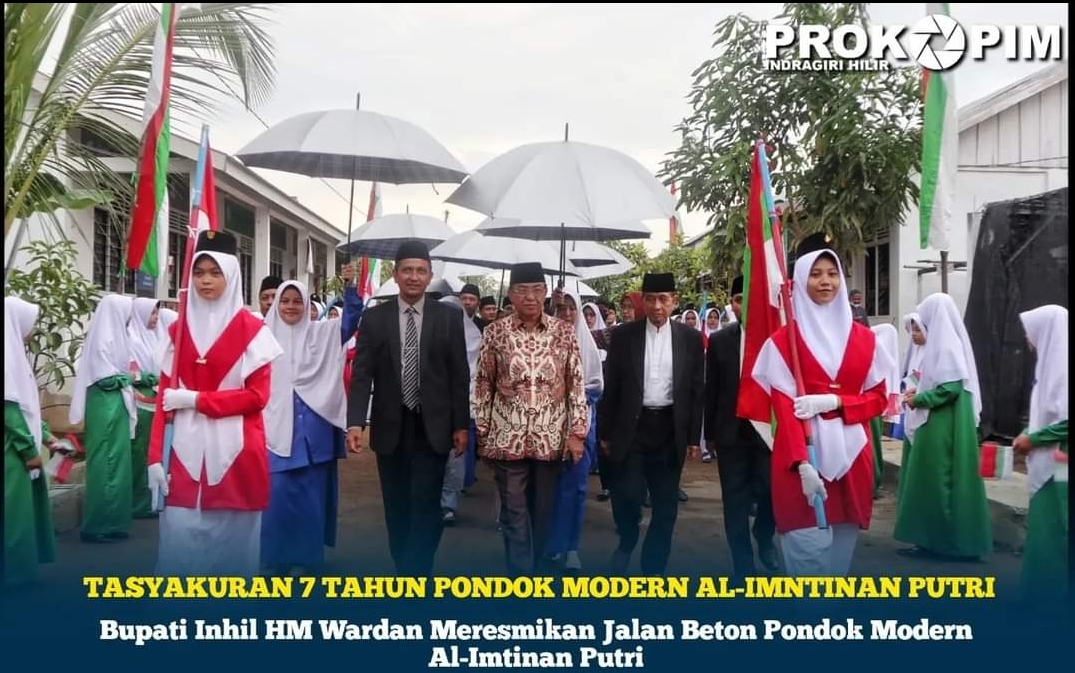Pimpinan Pondok Modern Al-Imtinan Putri juga tidak lupa menyampaikan ucapan terimakasih kepada Pemerintah Daerah ksusunya Bupati Inhil HM Wardan atas perhatian yang telah di berikan, yaitu pembangunan jalan beton dengan lebar 7 meter dan panjang 100 meter.