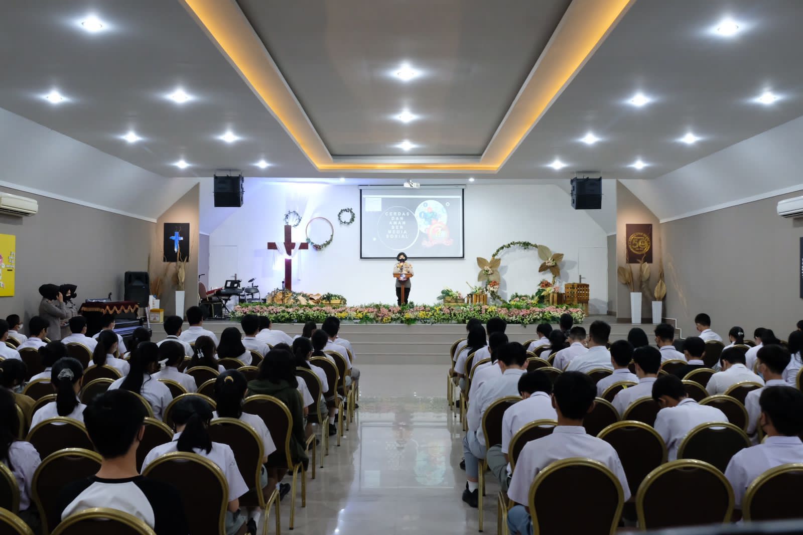 Dihadapan ratusan siswa dan para pengajar sekolah, Kabid Keuangan Polda Riau Kombes Retno Dwiyanti S.E membawakan materi penyuluhan berjudul Cerdas dan aman bermedia sosial.