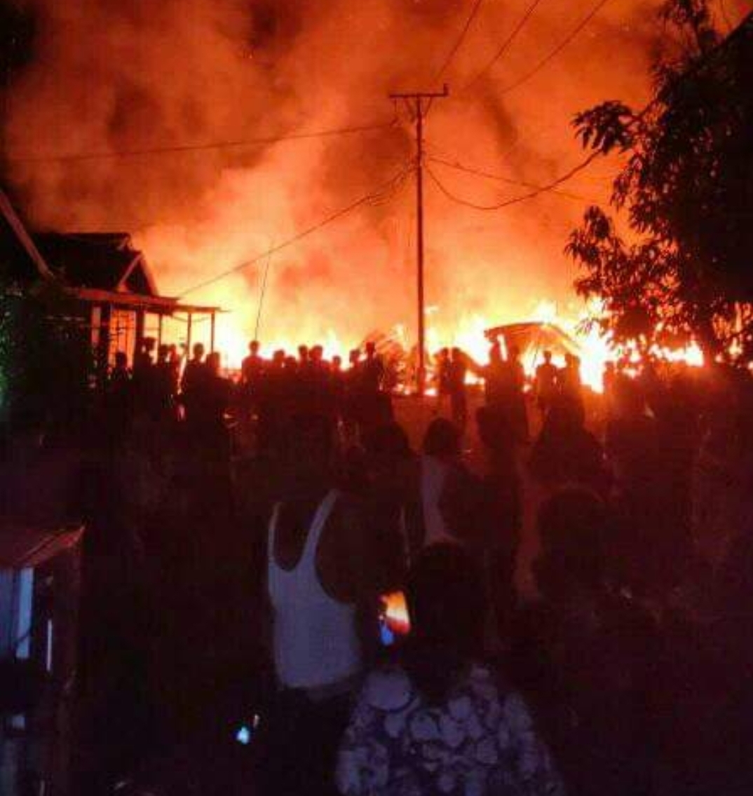 Salah seorang warga sekitar saat dikonfirmasi wartawan via telfon mengatakan, kebakaran itu menghanguskan sejumlah rumah warga.