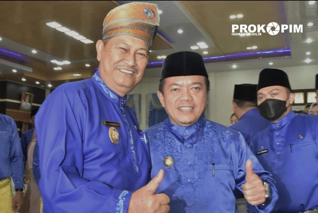 Hadiri Hari Jadi ke-57 Tanjab Barat, Wabup Inhil Gunakan Tanjak Berbahan Kelapa