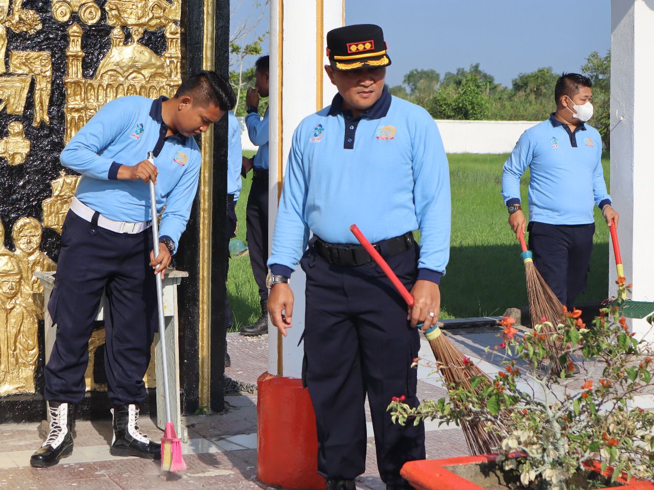 Sehari menjelang pelaksanaan Upacara dan Tabur Bunga di TMP Yudha Bakti Tembilahan, Kepala Lembaga Pemasyarakatan Kelas IIA Tembilahan Julianto Budhi Prasetyono memimpin seluruh jajaran untuk menggelar kerja bakti membersihkan lingkungan TMP, Kamis (11/8).