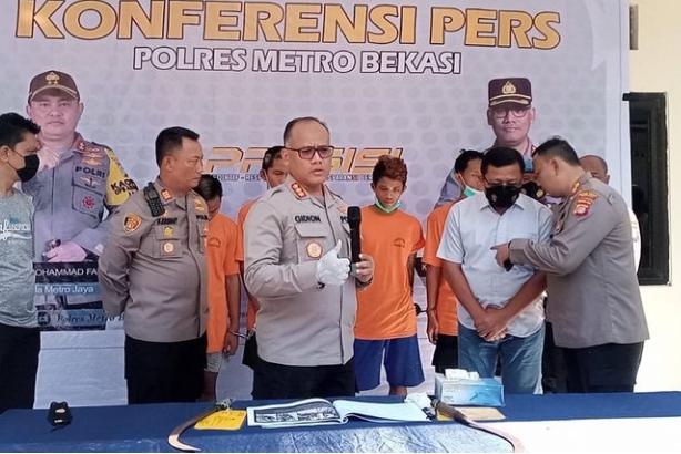 Kapolres Metro Bekasi Komisaris Besar Polisi Gidion Arif Setyawan mengatakan empat pelaku, yakni CS (18), MI (20), A alias I (18) dan FM (18) ditangkap saat polisi sedang patroli di Jalan Raya Kobak Bitung, Cikarang Timur, Kabupaten Bekasi.