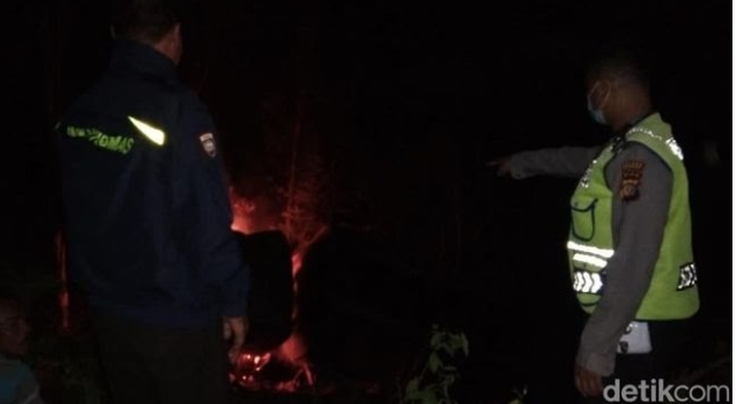 "Di jurang terjadi korslet arus pendek yang mengakibatkan percikan api pada bagian kepala mobil tersebut. Mobil terbakar," kata Donni.