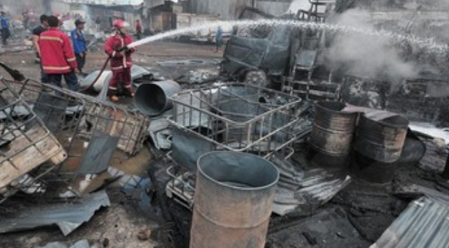 Untuk di lokasi kejadian ditemukan empat unit mobil tangki, 70 tangki drum, genset 13 unit, drum bulat 56 unit semua habis terbakar.