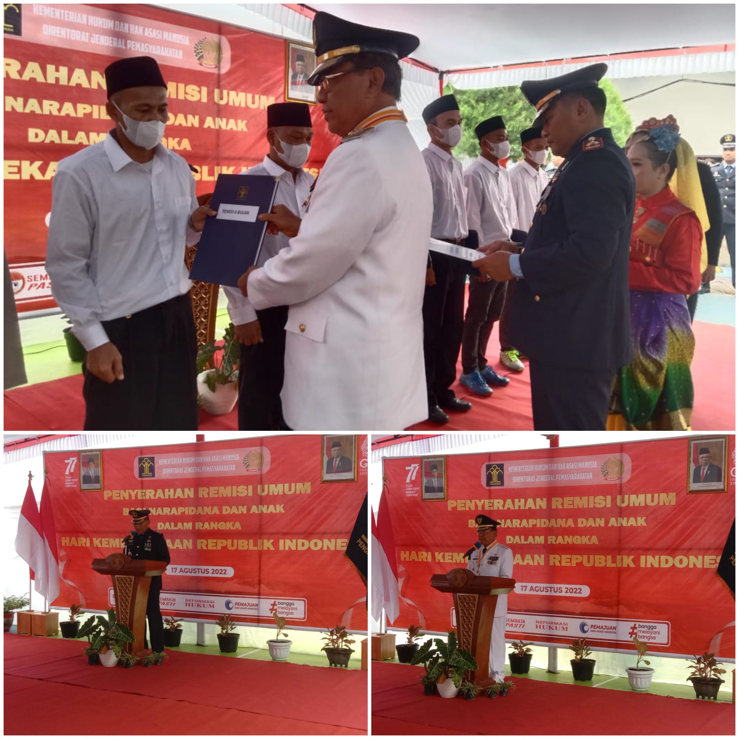 Penyerahan remisi dilakukan setelah mengikuti Upacara Hari Kemerdekaan Republik Indonesia ke-77 di halaman Kantor Bupati lnhil jalan Akasiah Tembilahan Rabu, (17/08/22).