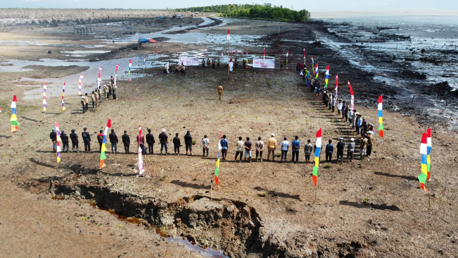 Langsungkan Upacara HUT RI ke -77 di Lahan Pasca Abrasi, Warga Kuala Selat: Desa Kami Akan Hilang