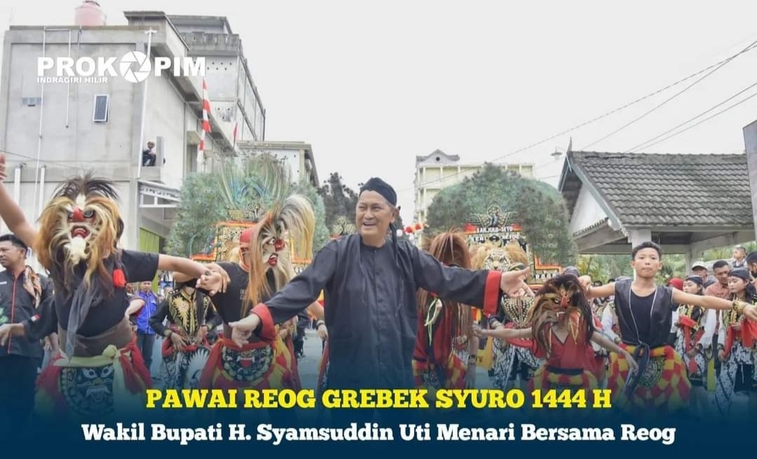 Meriahkan HUT RI ke-77 dan Tahun Baru Islam Muharram 1444 H Grebek Syuro, Wabup Inhil Menari Bersama Para Penari Reog