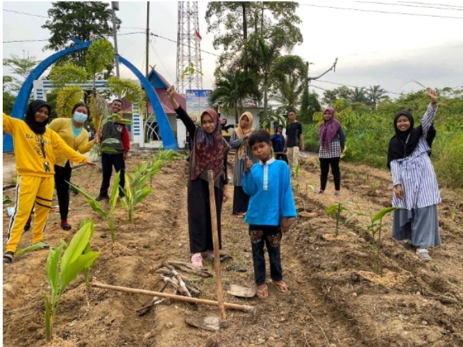 Mahasiswa Kukerta UNRI Membuat Taman TOGA di Depan Kantor Desa Pinang Sebatang