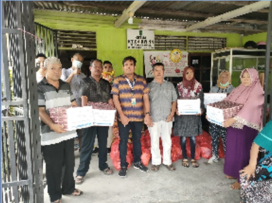 (kiri ke kanan) ) masyarakat Ring-1, masyarakat Ring-1, Jhon Chrismanto Gultom Branch Head FIFGROUP Cabang Tembilahan, Ketua RT.04 ,masyarakat Ring-1 dst, saat memberikan bantuan paket sembako kepada masyarakat sekitar kantor FIFGROUP yang berlokasi di Area Ring 1 kantor cabang FIFGROUP cabang tepatnya di depan Rumah pak RT.04 RW.14 Kelurahan Tembilahan Kota, Tembilahan, INHIL