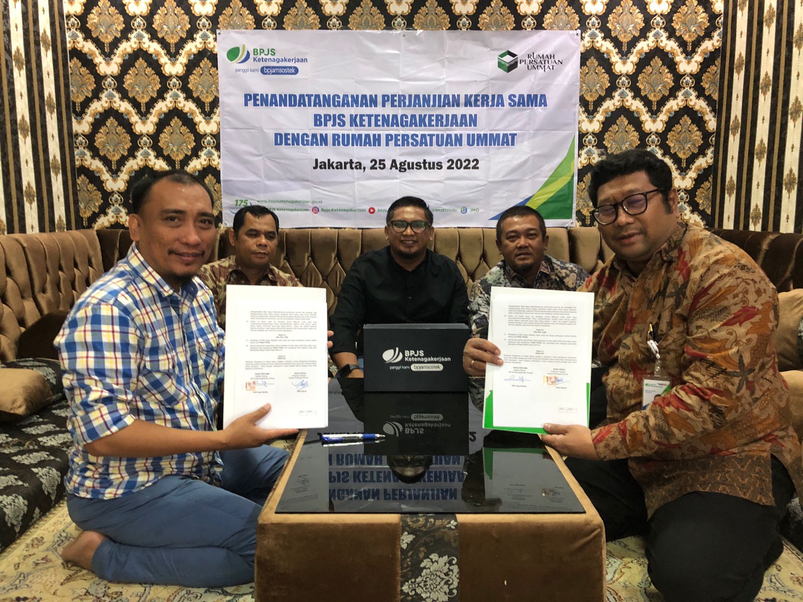 KILASRIAU.com, Indragiri hulu - Badan Penyelenggara Jaminan Sosial Ketenagakerjaan (BPJAMSOSTEK) Cabang Rengat Melakukan penanda tanganan kerjasama dengan Yayasan Rumah Persatuan Ummat (RPU) di Kantor Rumah Persatuan Ummat (RPU) Jakarta Timur, Kamis (25/08/2022).