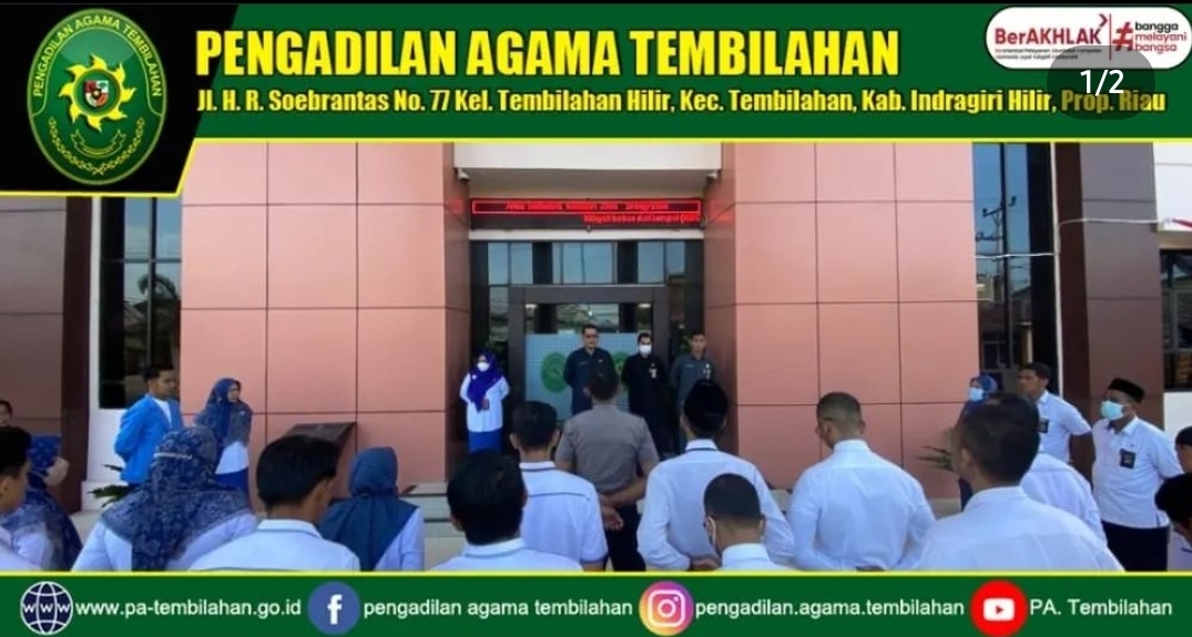 "Untuk itu, saya mengajak seluruh pegawai yang ada di Pengadilan Agama Tembilahan dapat menjalankan tugas dan tanggung jawab serta terus meningkat kan Kedisiplinan dalam bekerja dan mengimplementasikan 7 slogan budaya yang telah terpasang," ajak nya.