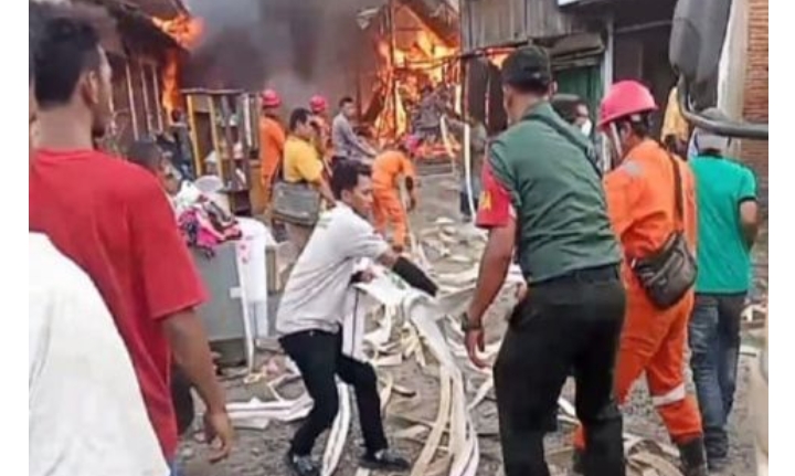 Kilasriau.com - Belasan kios di Desa Langkimat, Kecamatan Simangambat, Kabupaten Padang Lawas Utara, Sumatera Utara (Sumut) terbakar , Kamis (1/9/2022).