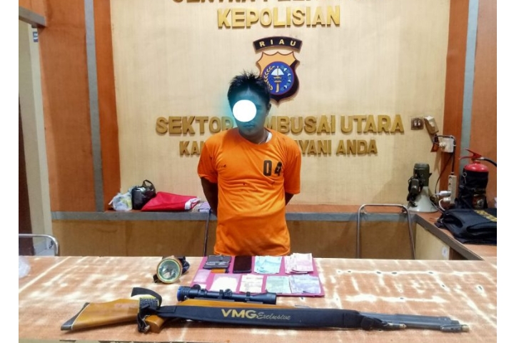 "Selain itu satu bungkus kantong besar berisi kristal bening diduga Nlnarkotika jenis sabu, uang tunai sebesar Rp2.310.000, satu senapan angin warna coklat, satu unit handphone Vivo Y12 warna merah maron, satu mancis, satu buah senter warna hitam oren dan satu unit Supra Fit trondol tanpa nopol,” rincinya.