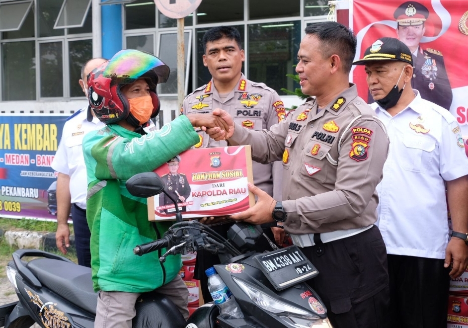 "Jajaran Polda Riau memberikan bantuan untuk masyarakat berupa paket sembako. Sore hari ini dilaksanakan oleh seluruh jajaran, tidak hanya di Polda Riau, tapi juga oleh jajaran Polres-Polres," jelas Kombes Sunarto, didampingi Kasubdit Regident Ditlantas Polda Riau, AKBP Budi Setyono.