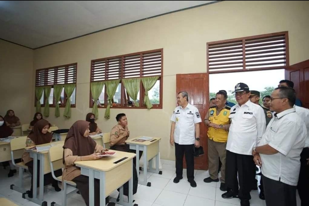 KILASRIAU.com - Gubernur yang didampingi Bupati Inhil meninjau secara langsung SMA negeri 1 Tembilahan dan menyaksikan proses belajar mengajar juga, SMA ini berlokasi di jalan pemda kelurahan sungai beringin Kecamatan Tembilahan, Rabu (07/09/22)