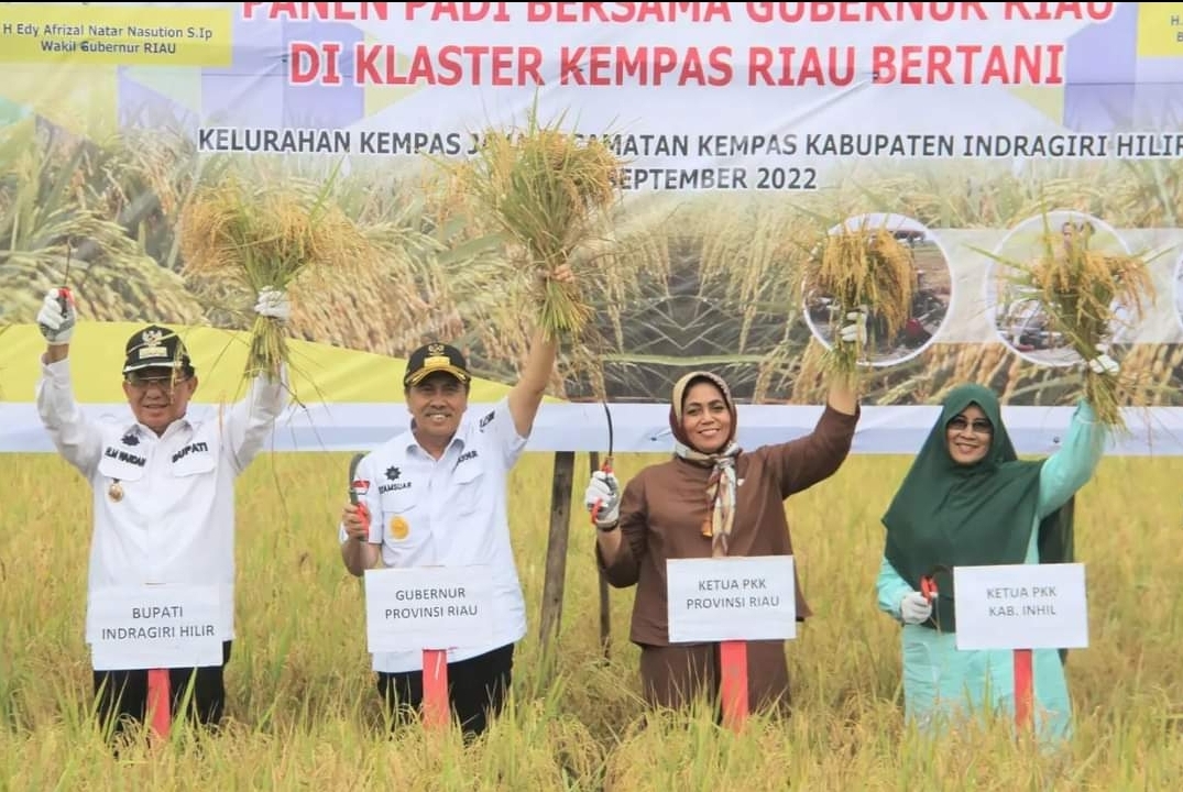 "Untuk mendukung program Gubernur Riau dalam upaya peningkatan produksi padi, beberapa Daerah lumbung padi telah melakukan penanaman 2 kali (IP200) khususnya pada Kecamatan Kempas," ucap Bupati