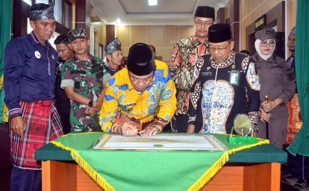 Bupati Indragiri Hilir HM. Wardan bersama Ketua Pengadilan Tinggi Agama Pekanbaru DR. H. Harun. S, SH, MH dan Ketua Pengadilan Agama Tembilahan Wachid Baihaqi, S.H.I.,M.H secara resmi me- launching inovasi aplikasi e- Sapat (Sarana Pelayanan Cepat Terintegrasi) dan meresmikan PTSP PA.
