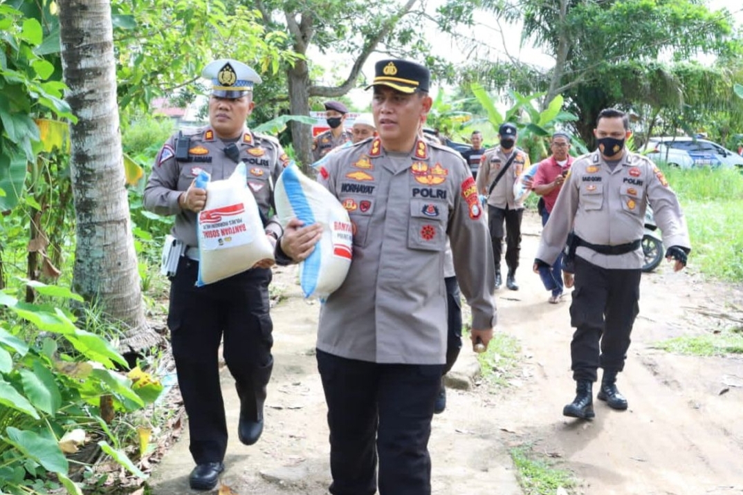 Kapolres Inhil AKBP Norhayat SIK, Kamis (8/9/2022) mengungkapkan bahwa pembagian bantuan sosial atau bansos tadi berupa paket sembako berupa beras 10 kilo. Dari Polres Inhil sebanyak 200 paket dan Polsek Jajaran sebanyak 600 paket.