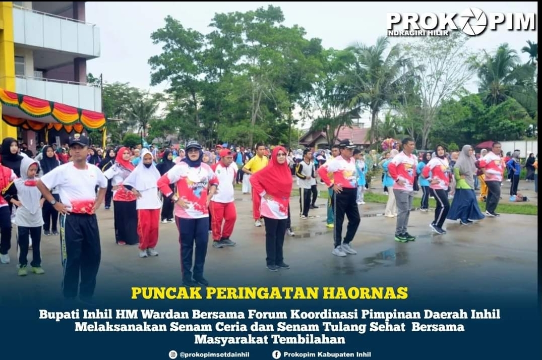 Puncak Peringatan HAORNAS di Inhil, Bupati Bersama Forkopimda Senam Bersama Masyarakat Tembilahan