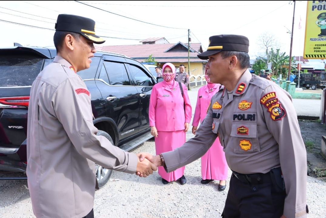 Kilasriau.com - Kapolres Inhil AKBP Norhayat SIK melaksanakan kunjungan kerja ke Polsek Gaung Anak Serka (GAS) bersama ketua Bhayangkari Inhil, Ny Ani Norhayat, Senin (12/9/22).
