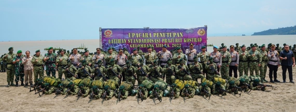 Penyematan baret dan brevet warga kehormatan Kostrad terhadap Kapolri tersebut dilaksanakan usai Upacara penutupan latihan standardisasi prajurit Kostrad di Pantai Palangpang Kecamatan Ciemas, Kabupaten Sukabumi, Jawa Barat, Selasa, 13 September 2022.