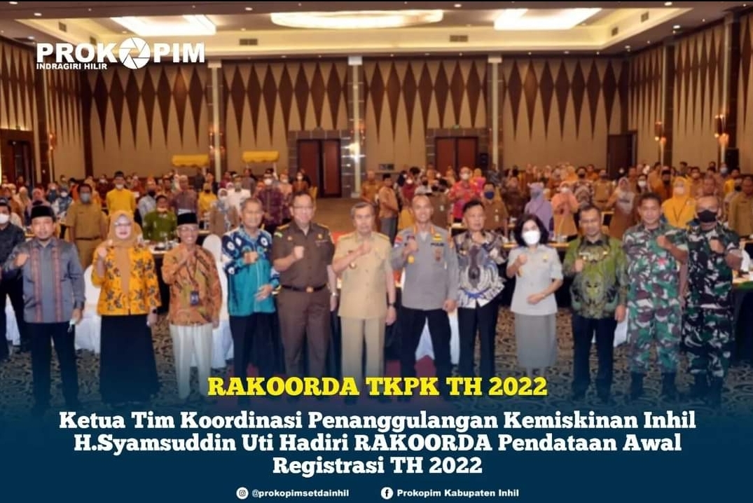 KILASRIAU.com - Wakil Bupati Indragiri Hilir H. Syamsudin Uti dalam kapasitasnya selaku Ketua Tim Percepatan Penanggulangan Kemiskinan Daerah Kab. Inhil menghadiri Rapat Koordinasi Daerah (Rakoorda) Pendataan awal Registrasi Sosial Ekonomi (Reksosek) Tahun 2022 yang di laksanakan di Ballrom Hotel Pangeran Pekanbaru, Selasa (13/9/2022)