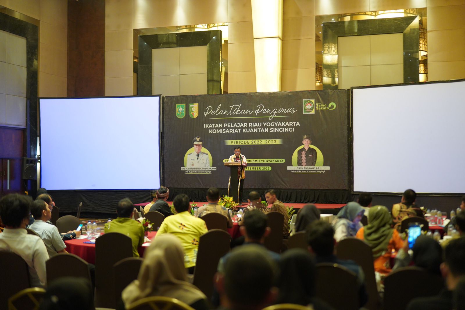 YOGYAKARTA - Plt Bupati Kuantan Singingi Drs. H Suhardiman Amby, Ak.,MM melantik Toni Gunawan Sebagai Ketua IPRY Beserta anggota yang bertempat di Hotel Ambarukmo Jogja, pada Rabu (14/09/2022).
