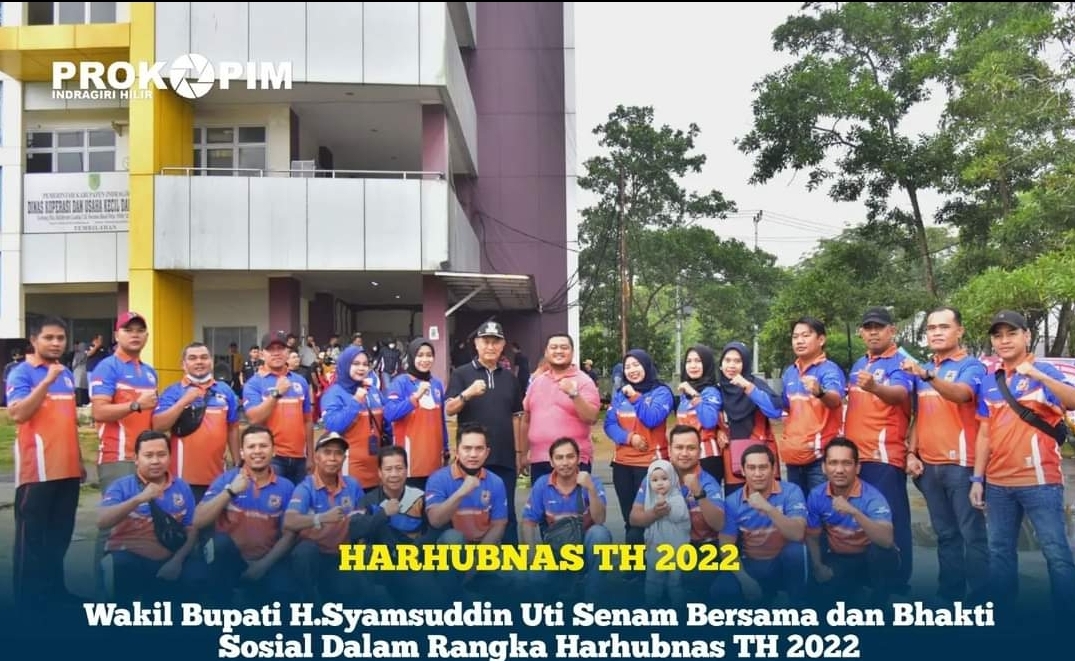 KILASRIAU.com - Wakil Bupati Kabupaten Indragiri Hilir H.Syamsuddin Uti melaksanakan senam bersama dalam rangka Hari Perhubungan Nasional (Harhubnas) 2022 yang dipusatkan di jalan Swarna Bumi Tembilahan, Ahad (18/9/22) pagi.
