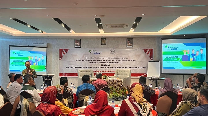 Kerjasama tersebut ditandai dengan penandatanganan MoU oleh Deputi Direktur Wilayah BPJAMSOSTEK Kanwil Sumbarriau dan Ketua DPD Perhimpunan Bank Perkreditan Rakyat (Perbarindo) Provinsi Riau di Prime Park Hotel pada senin (19/9/2022).