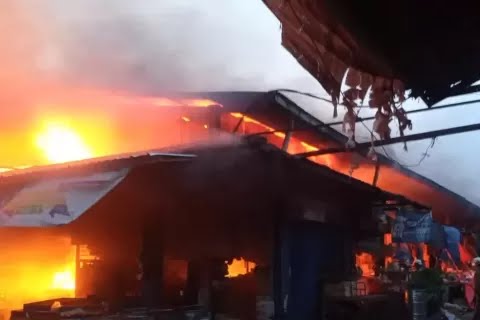 "Api diduga berasal dari toko sembako, karena banyak bahan Mudha terbakar api langsung merambat ke kios lainnya yang ada disekitarnya," ujar Munir.