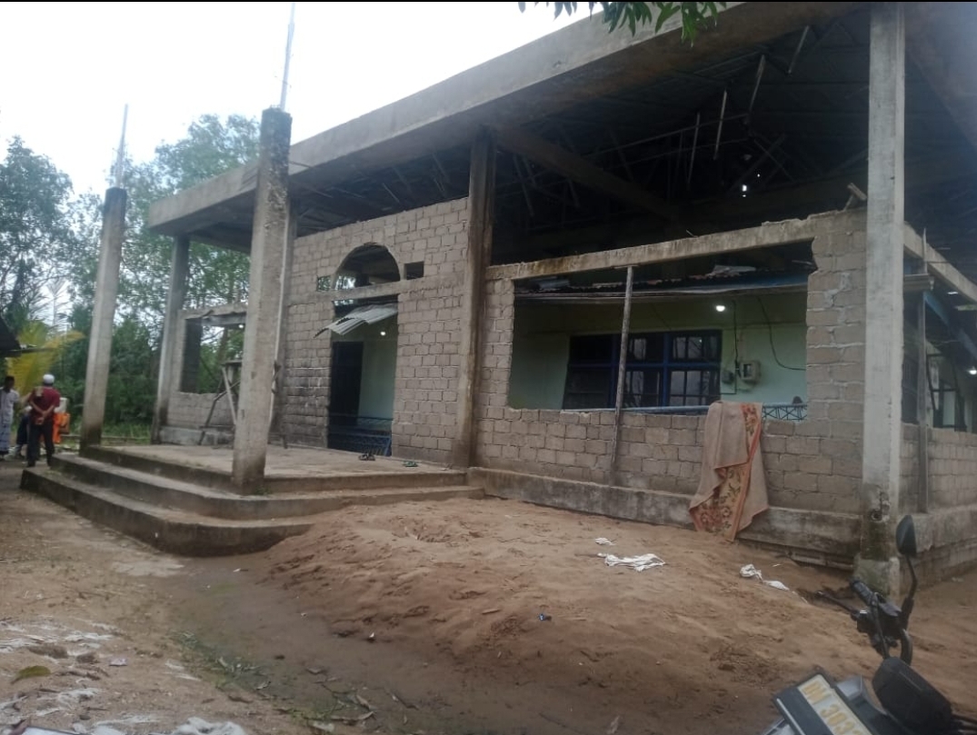 Bangunan tersebut sudah berdiri sejak tahun 2019 hingga saat ini dan masih belum rampung, masih banyak membutuhkan bahan - bahan material untuk menyelesaikan bangunan masjid itu.