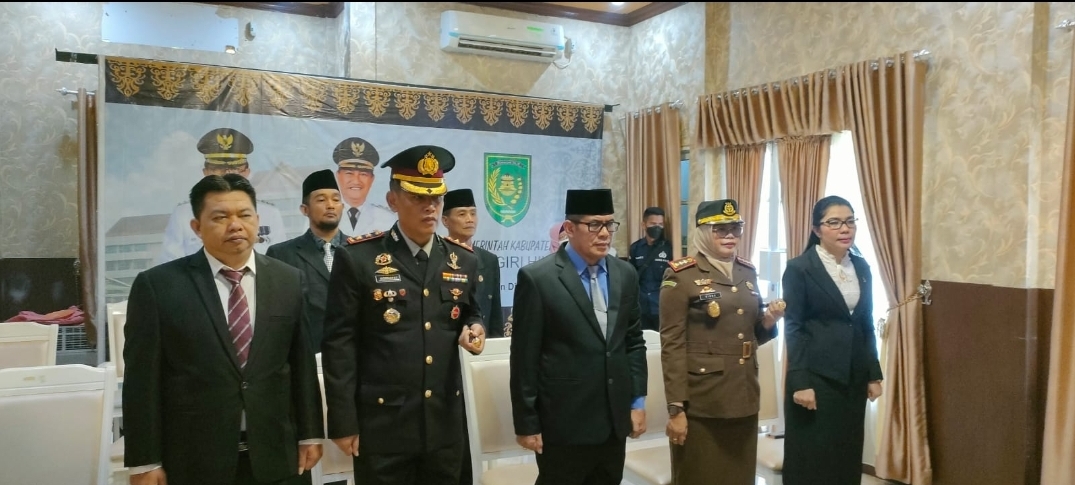 Hadir pula secara virtual, Bupati Inhil HM Wardan yang di wakili oleh Kaban Kesbangpol Inhil,H. Arifin. S.Sos., MM, Ketua Pengadilan Negeri Tembilahan, Hera Polosia Destini S.H., M.H, Kapolres Inhil AKBP Norhayat SIK,