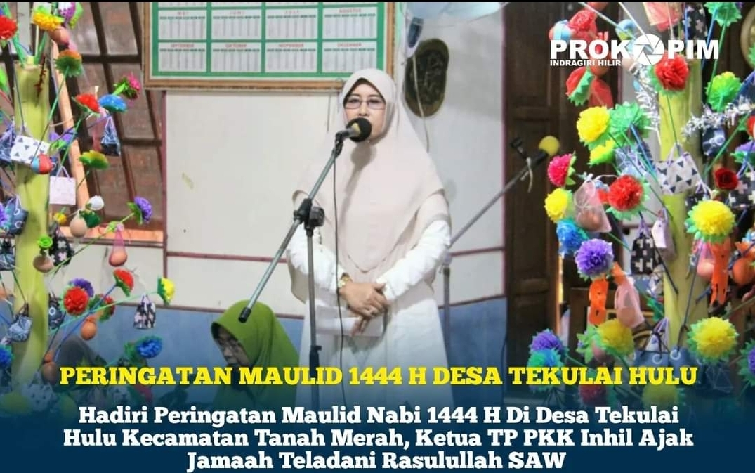 "Peringatan Maulid Nabi Muhammad SAW bulan kali ini saya merasa berbahagia sekali berada di tengah-tengah ibu – ibu TP PKK Desa Tekulai Hulu, keluarga Besar Majelis Taklim Perempuan (MTP), Muslimat NU Desa Tekulai Hulu Kecamatan Tanah Merah,” ujarnya.