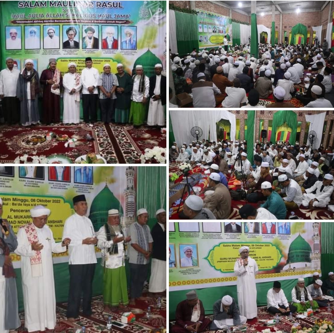 Selanjutnya untuk tausyiah agama disampaikan oleh Al Mukarram Muhammad Noval Arni Al Anshari pimpinan majelis taklim Attazkiah Provinsi Kalsel - Kaltim - Kalteng. Dan acara diakhiri dengan zikir dan doa haul jama'.**