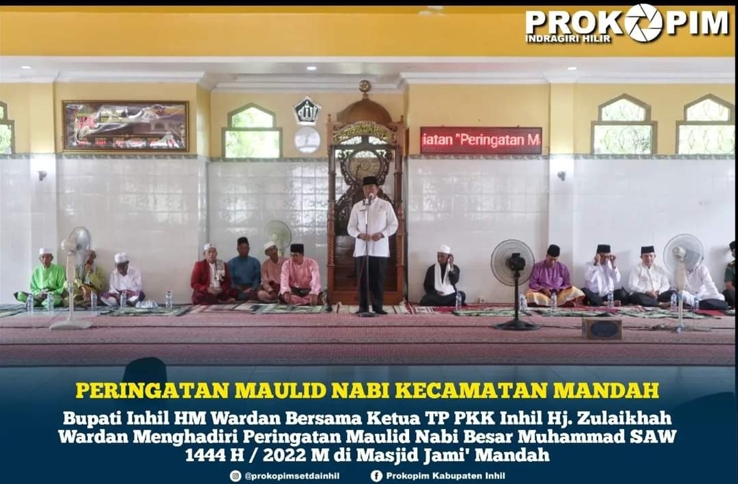 "Untuk itu, atas nama Pemerintah Kabupaten Inhil kami menyambut baik atas diselenggarakannya peringatan Maulid Nabi Besar Muhammad SAW di Kecamatan Mandah ini. Mudah-mudahan kita semua dapat mengambil hikmah dan pelajaran dari peringatan Maulid Nabi Muhammad SAW ini," ucapnya