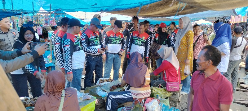 Dalam kegiatan peninjauannya terhadap kondisi pasar dan harga sembako, Plt Bupati Suhardiman bercengkrama dengan warga dan pedagang di Pasar Lubuk Jambi, guna mengetahui kenaikan harga pasar yang diakibatkan kenaikan BBM.