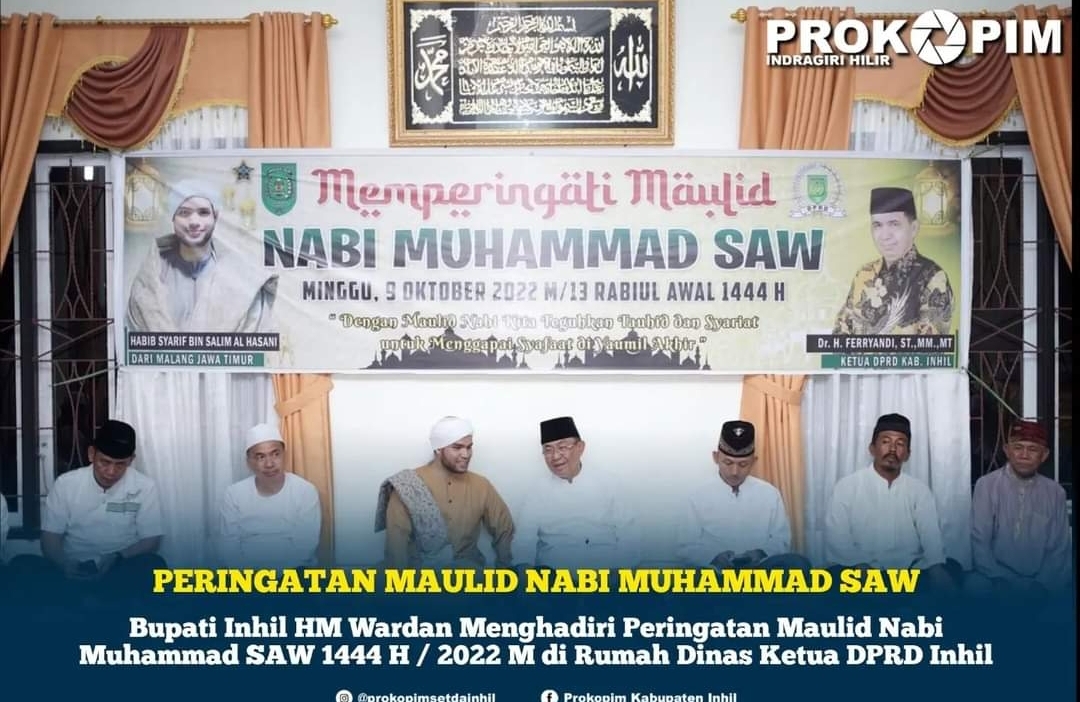 KILASRIAU.com - Ketua Dewan Perwakilan Rakyat Daerah (DPRD) Kabupaten Indragiri Hilir (Inhil) H. Ferryandi menggelar peringatan Maulid Nabi Muhammad SAW 1444 H / 2022 M, Minggu (9/10/22) malam.