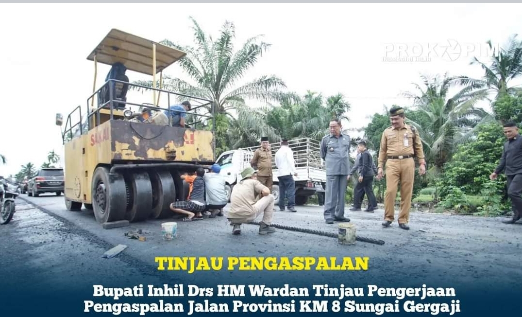 Tinjau Pengerjaan Pengaspalan Jalan Provinsi KM 8 Sungai Gergaji, Ini Kata Bupati Inhil
