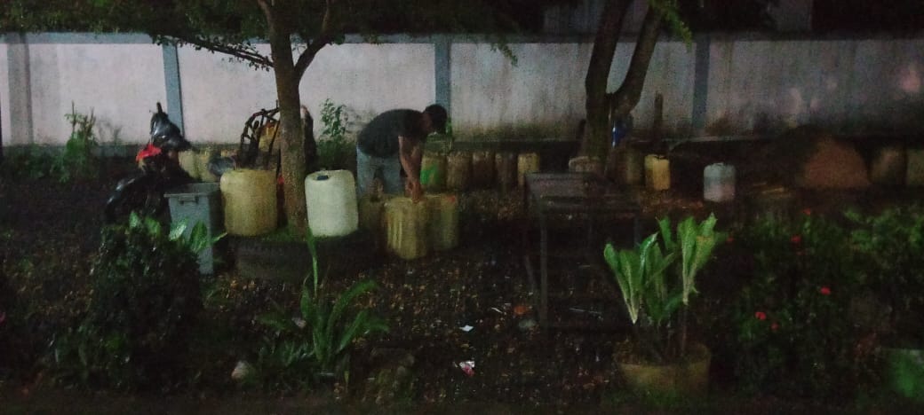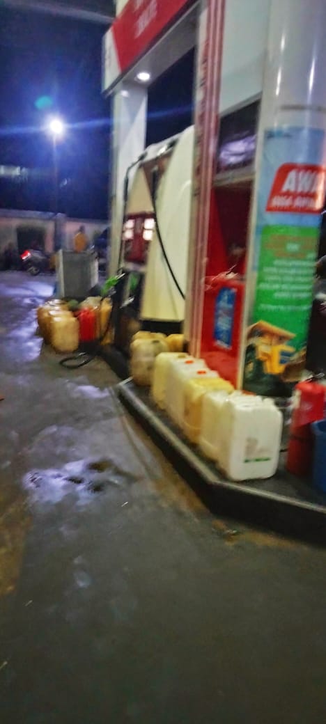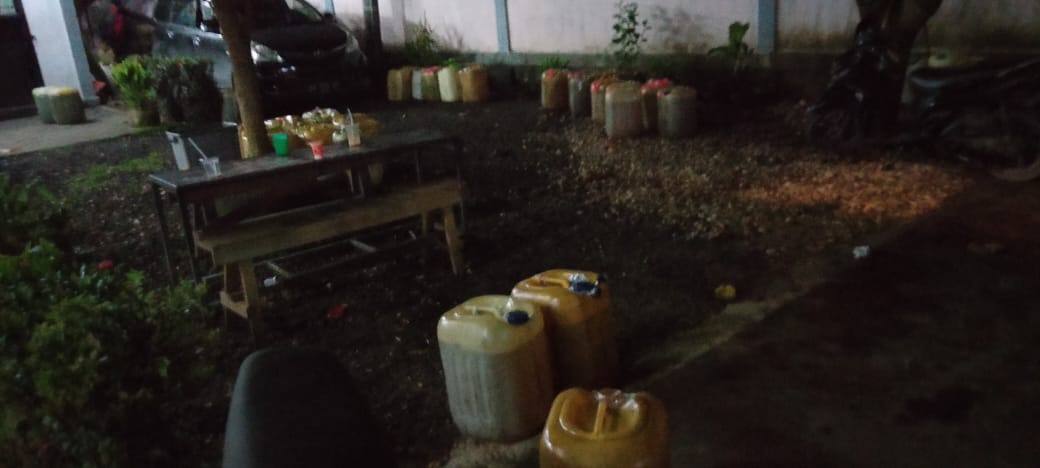 Begitu juga dengan Pertalite, juga diisi ke jerigen dengan jejeran antrian jerigen di bawah pompa minyak menunggu petugas memenuhi rongga bagian dalamnya.