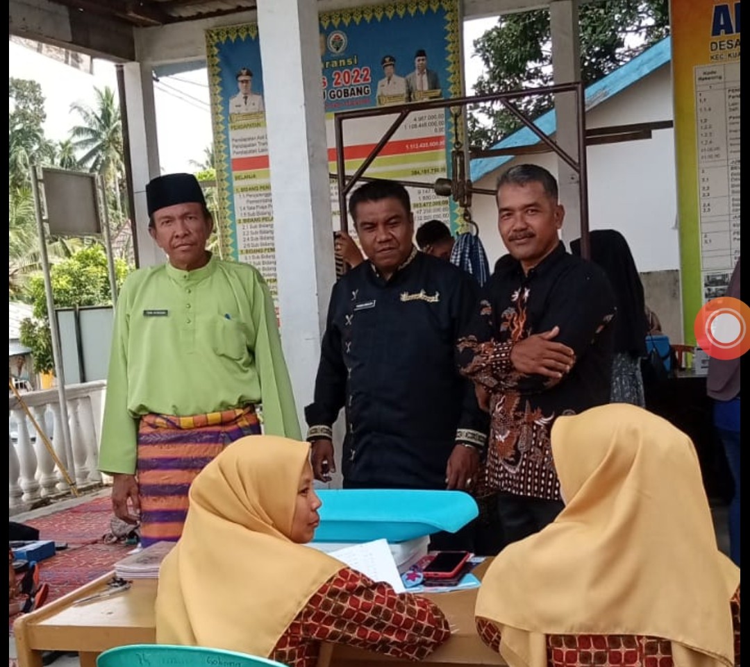 PINTU GOBANG, KUANSING - Kepala Pusat Kesehatan Masyarakat (Kapus) Kari, Toni Afrison, kunjungi kegiatan Posyandu Manggis Mandiri Terpadu melakukan kegiatan Imunisasi terhadap balita, yang bertujuan untuk mencegah dan menjaga kesehatan bayi, Jum'at (14/10/2022), di kantor Desa Pintu Gobang, kecamatan Kuantan Tengah, kabupaten Kuantan Singingi, Riau.
