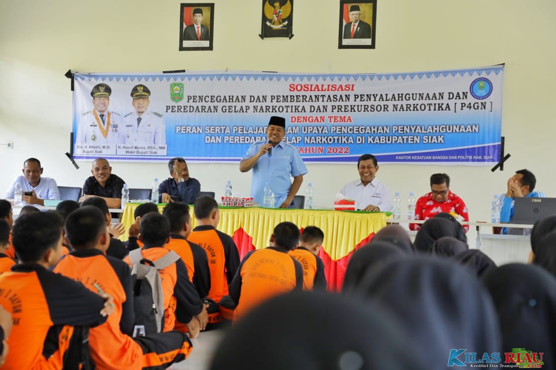 Kilasriau.com - Untuk menekan angka penyebaran, pengedaran dan Penyalahgunaan narkoba di Kabupaten Siak, Bupati Siak Alfedri membuka Sosialisasi Pencegahan dan Pemberantasan Penyalahgunaan dan Peredaran Gelap Narkotika dah Prekursor Narkotika (P4GN).