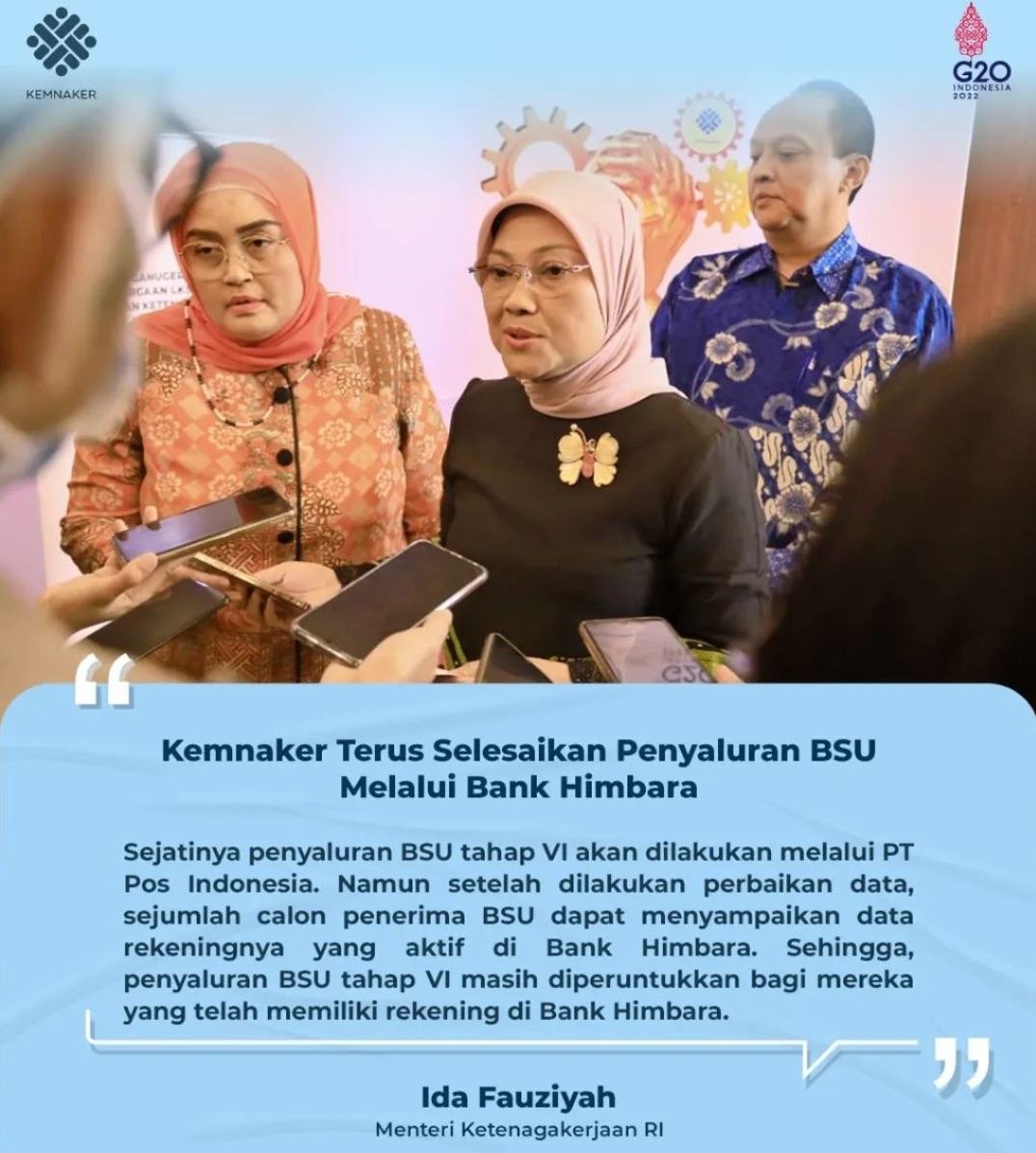 Menteri Ketenagakerjaan, @idafauziyahnu , menjelaskan, sejatinya penyaluran tahap VI akan dilakukan melalui PT Pos Indonesia. Namun setelah dilakukan perbaikan data, sejumlah calon penerima BSU dapat menyampaikan data rekeningnya yang aktif di Bank Himbara. Sehingga, penyaluran BSU tahap VI masih diperuntukkan bagi mereka yang telah memiliki rekening di Bank Himbara.
