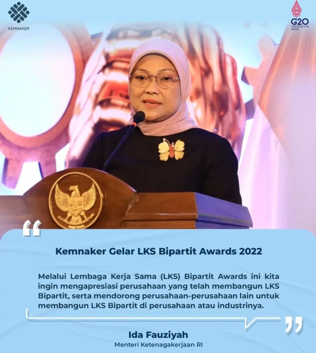 "Melalui LKS Bipartit Awards ini kita ingin mendorong perusahaan-perusahaan untuk membangun LKS Bipartit di perusahaan atau industrinya," kata Menaker Ida usai menyerahkan LKS Bipartit Awards Tahun 2022 di Jakarta, Kamis (20/10/2022).