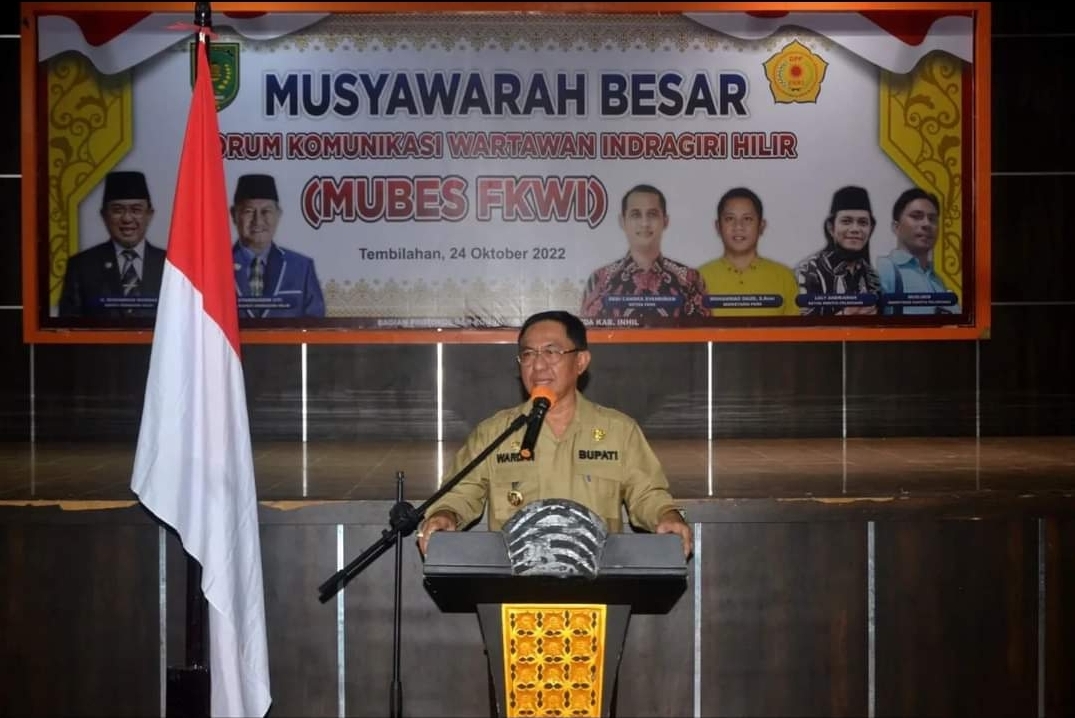 Kilasriau.com - Bupati Indragiri Hilir H. M. Wardan membuka Musyawarah Besar (Mubes) Forum Komunikasi Wartawan Indragiri Hilir (FKWI) yang dilaksanakan di Gedung Engku Kelana Tembilahan, Senin, 24/10/2022.
