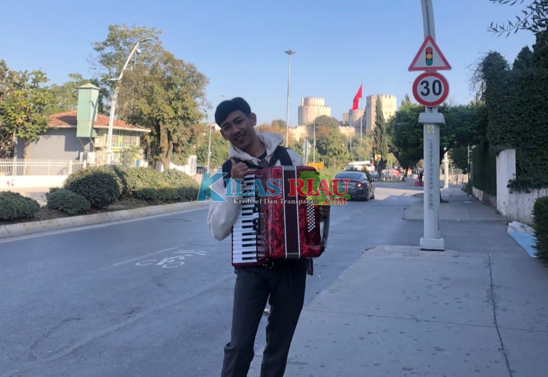KUANTAN SINGINGI - Kembali Putra Kuantan Singingi mengukir prestasi di negeri orang. Kali ini, Aldi Sumbari Putra alumni SMA N 1 Sentajo Raya yang juga kelahiran Sentajo Raya, kini duduk di bangku perkuliahan ISI Padang Panjang, harumkan negeri dengan mengikuti ajang kesenian event Internasional di Istanbul Turki.