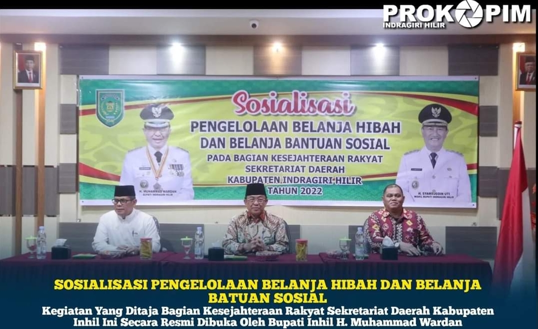 Kilasriau.com - Bagian Kesejahteraan Rakyat (Kesra) Sekretariat Daerah Kabupaaten (Setdakab) Indragiri Hilir (Inhil) menggelar Sosialisasi Pengelolaan Belanja Hibah dan Belanja Bantuan Sosial secara resmi dibuka oleh Bupati Inhil Drs. H. Muhammad Wardan, MP disalah satu Hotel di Tembilahan, Kamis (27/10/22) malam.