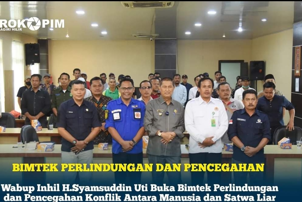 Kilasriau.com - Seiringnya dengan meningkatnya konflik antara manusia dan satwa liar akhir-akhir ini di Kabupaten Indragiri Hilir, Wakil Bupati H.Syamsuddin Uti membuka Bimbingan Teknis perlindungan dan pencegahan konflik antara manusia dan satwa liar di lantai 5 aula kantor Bupati, Kamis (27/10/2022)