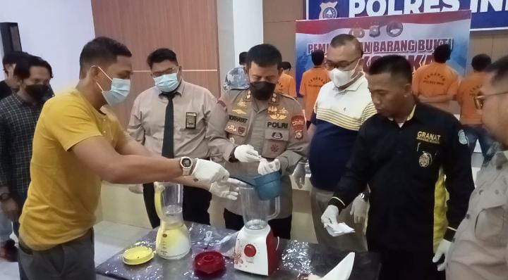 Pemusnahan yang berlangsung di aula rekonfu Mapolres Inhil jl. Gajah Mada Tembilahan turut dihadiri Kejaksaan Negeri Tembilahan, Pengadilan Tembilahan, Kerja MUI, Ketua DPC Granat Inhil. Jum'at, (28\10\22).