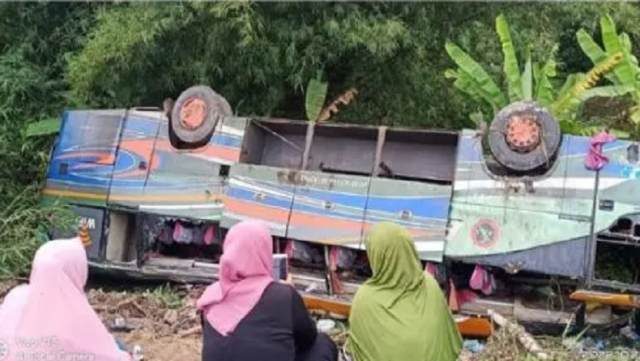 Belum diketahui penyebab pasti kecelakaan bus ALS tersebut.