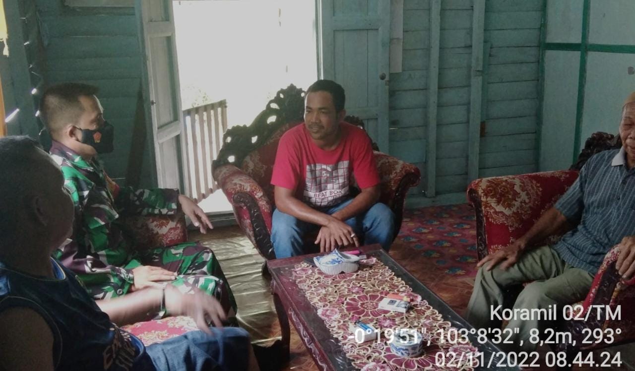 Kilasriau.com - Babinsa Koramil 02/Tanah Merah jajaran Kodim 0314/Inhil Serda Agusmi Harianto melaksanakan komunikasi sosial (Komsos) bersama warga desa Tekulai Bugis, kecamatan Tanah Merah, kabupaten Indragiri Hilir (Inhil), Rabu (2/11/22).